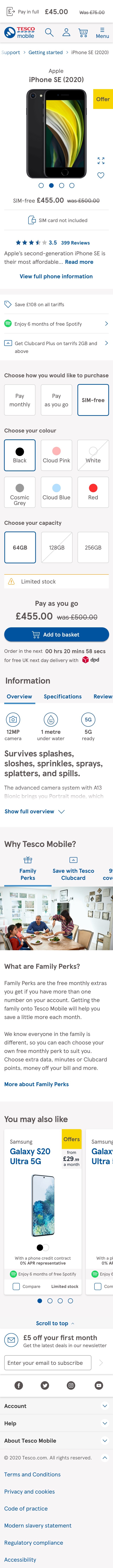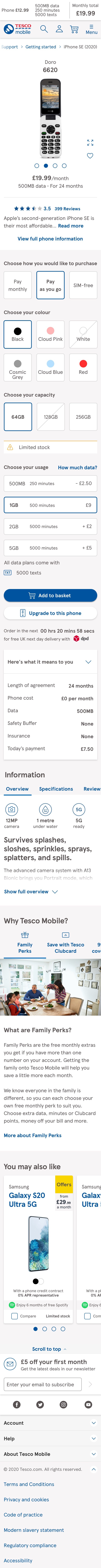 The option to upgrade needed the user to login so that Tesco Mobile could determine if they were eligible for the upgrade. By moving the upgrade button under the "Add to basket" button we catch the users attention to log in and their upgrade options.