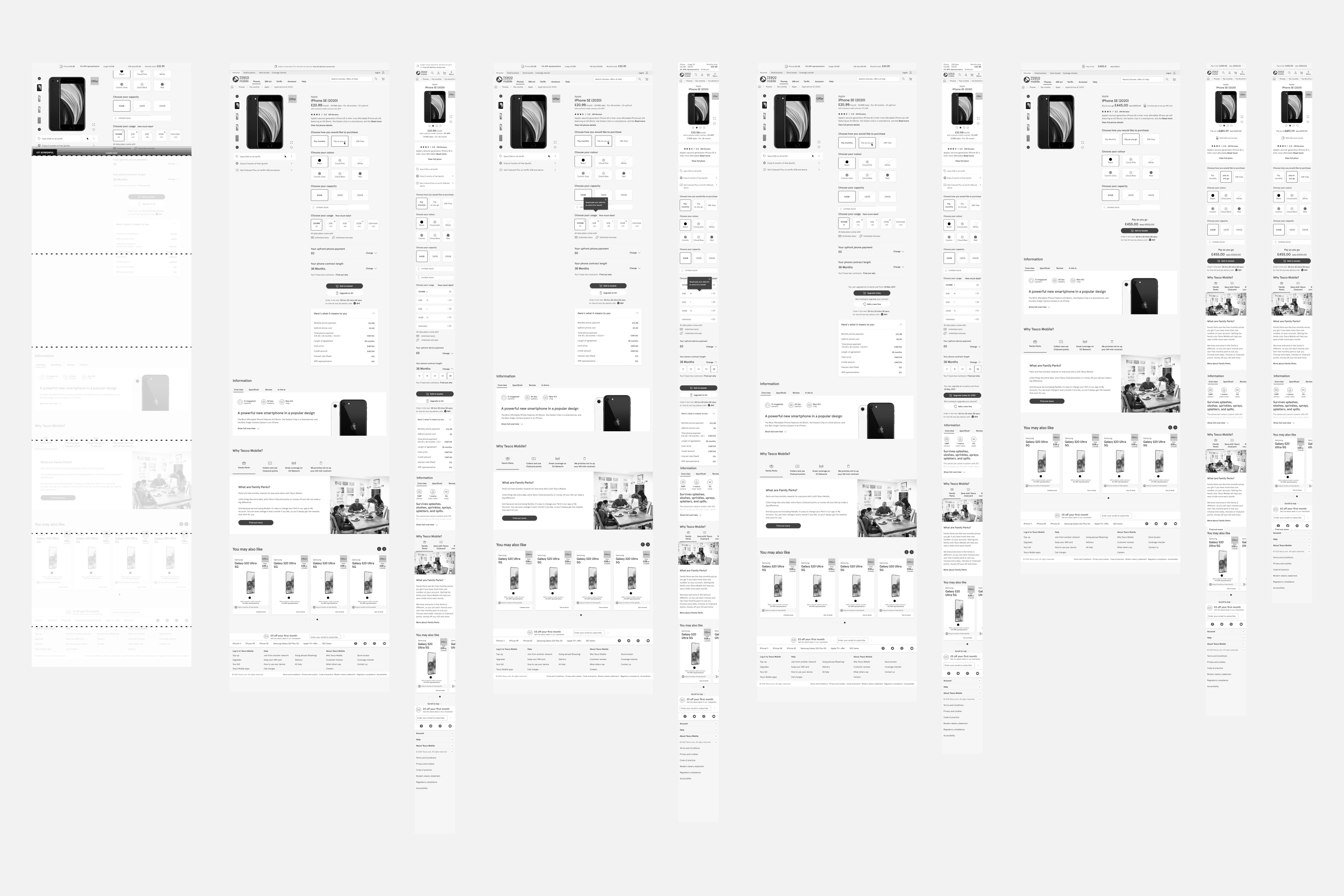 I began by designing the Pay Monthly screens first, as they contained the most options and information. This approach made it easier to create the Pay As You Go and SIM-free screens without complications.